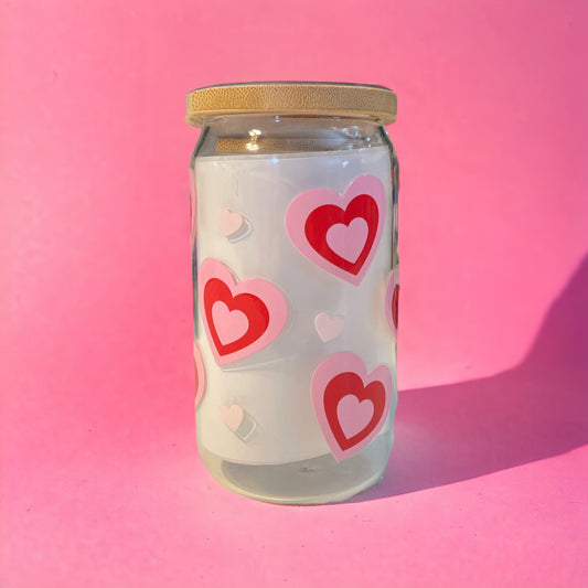 Pink Red Hearts 12oz. Glass Cup