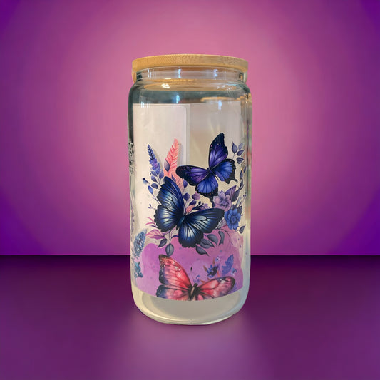 Purple Butterfly 16oz. Frosted Glass Cup